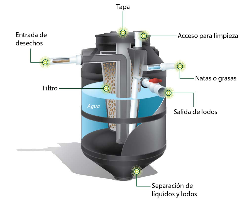 - Eficiente, su desempeño es superior al de una fosa séptica debido a que realiza un tratamiento de las aguas residuales.
