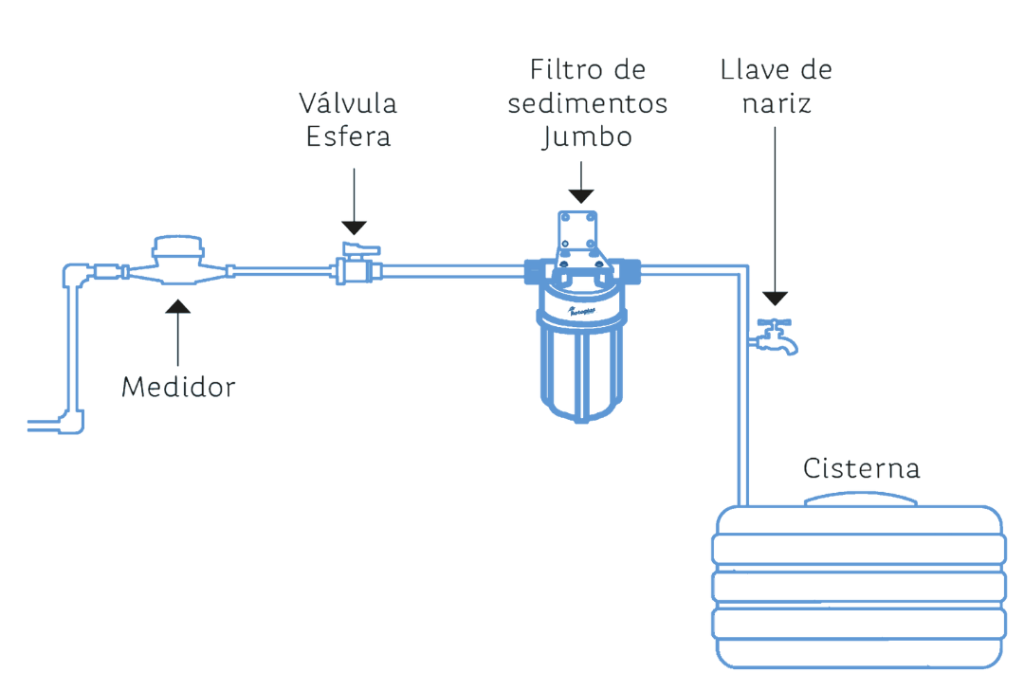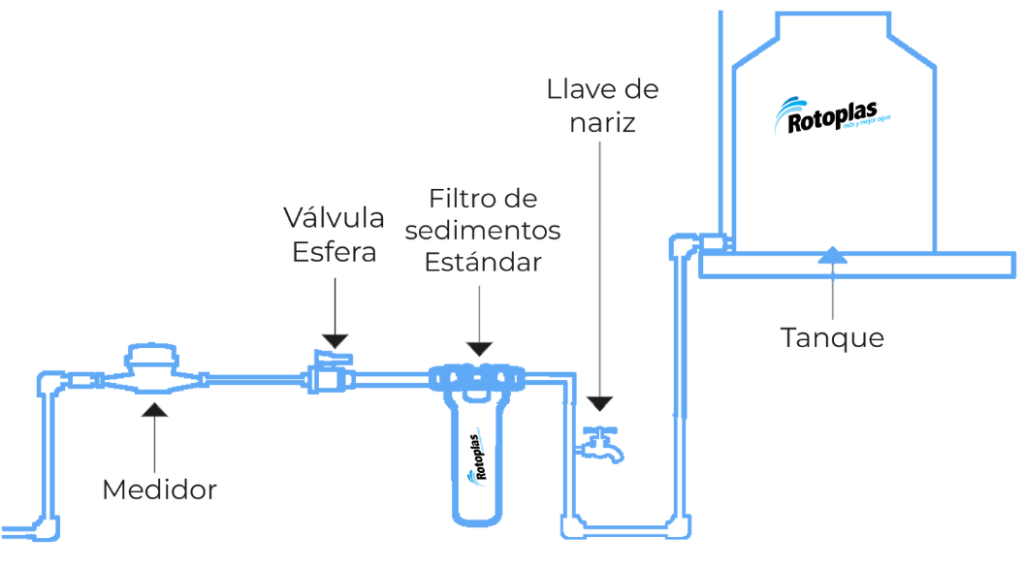 · El lugar recomendado para la instalación del Filtro de sedimentos Estándar es después del medidor de agua, desde donde se tendrá la salida hacia el Tanque Rotoplas o el resto de la casa.