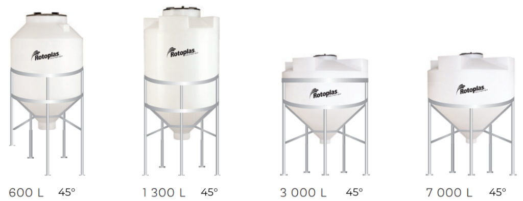 Las Tolvas Rotoplas están diseñadas con un material graduado y traslúcido, que mantiene su contenido libre de colores, sabores y olores. Además, poseen un fondo cónico que facilita el vaciado total y la dosficación del producto almacenado, y cuentan con un cerrado hermético que conserva la temperatura y evita la humedad.